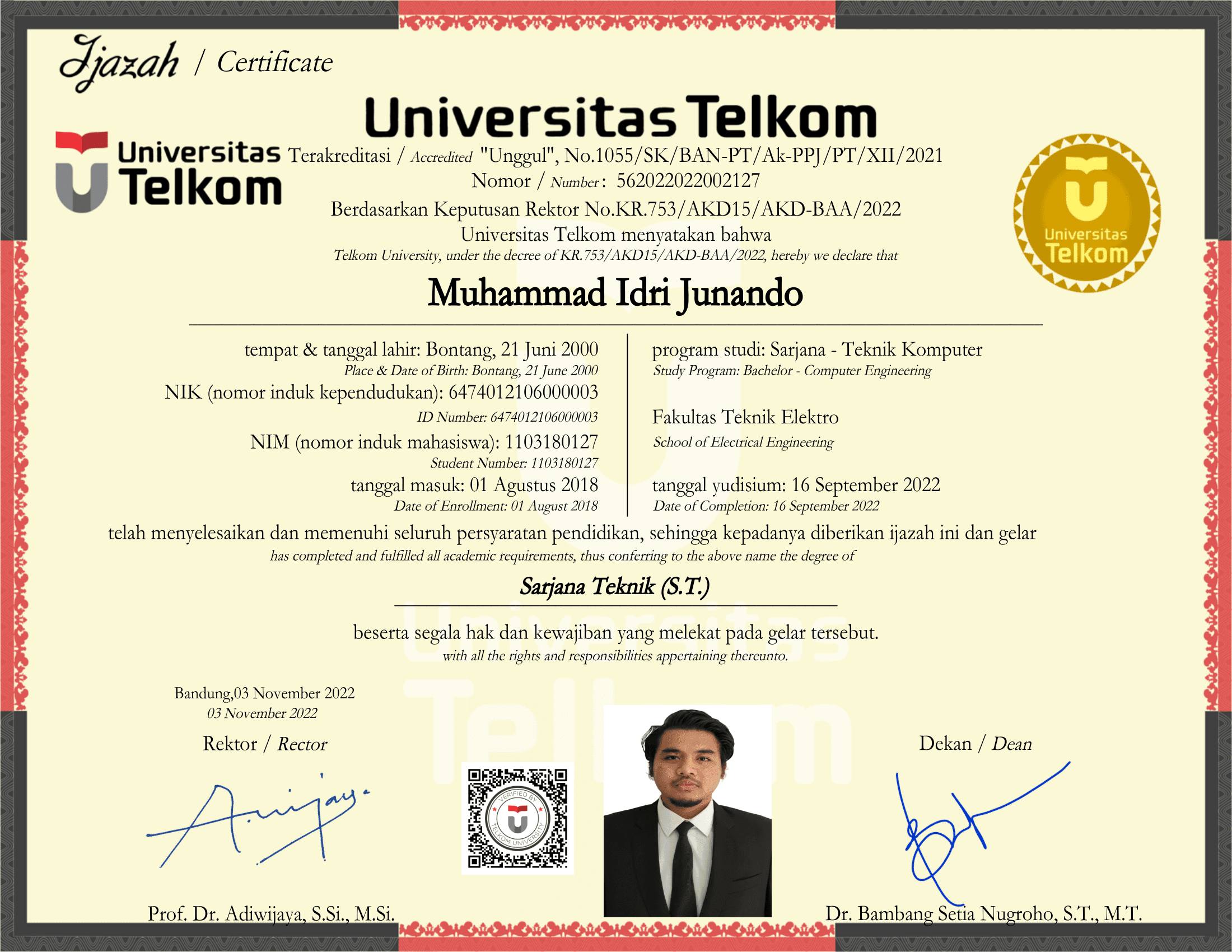 Here's a more concise version of your professional journey: I began my career while earning a Bachelor’s degree in Computer Engineering at Telkom University, graduating in 2022 with a GPA of 3.06. During my studies, I actively contributed to multimedia and game development projects, culminating in a campus tour simulation as my final project, which showcased my creativity and technical expertise.