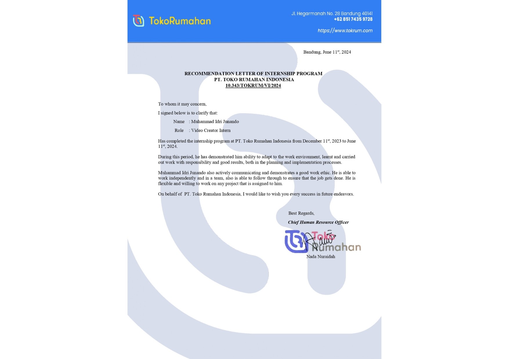 At TokoRumahan, I thrived as a Content Creator, leading the TREndy YouTube program and producing engaging video content across various themes. This role sharpened my storytelling, leadership, and video production skills, further establishing my passion for creative media.